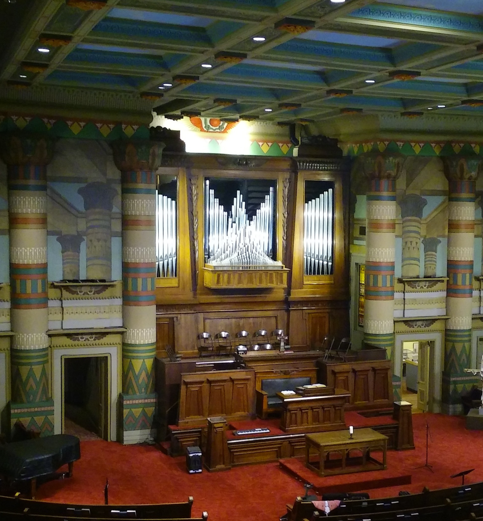 Built in the mid-1850s, the interior and exterior of the Downtown Presbyterian Church in Nashville, Tennessee, draws heavily on artistic and architectural designs of the ancient Nile Valley.