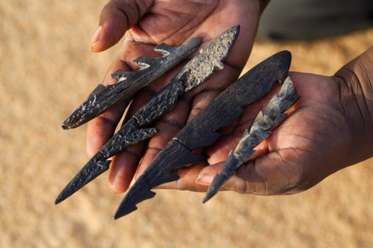 Harpoon heads, dating to 7,800 years ago, found at Gobero, a Kiffian-culture site located in what is now the Ténéré Desert, Niger. Credit: Paul Sereno