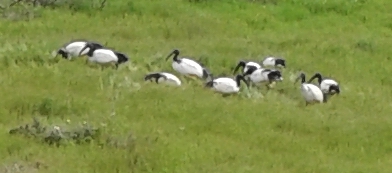 African sacred ibis (Threskiornis aethiopicus) on grassland with white flowers. Credit: Aart Rietveld, CC BY-SA 4.0, via Wikimedia Commons